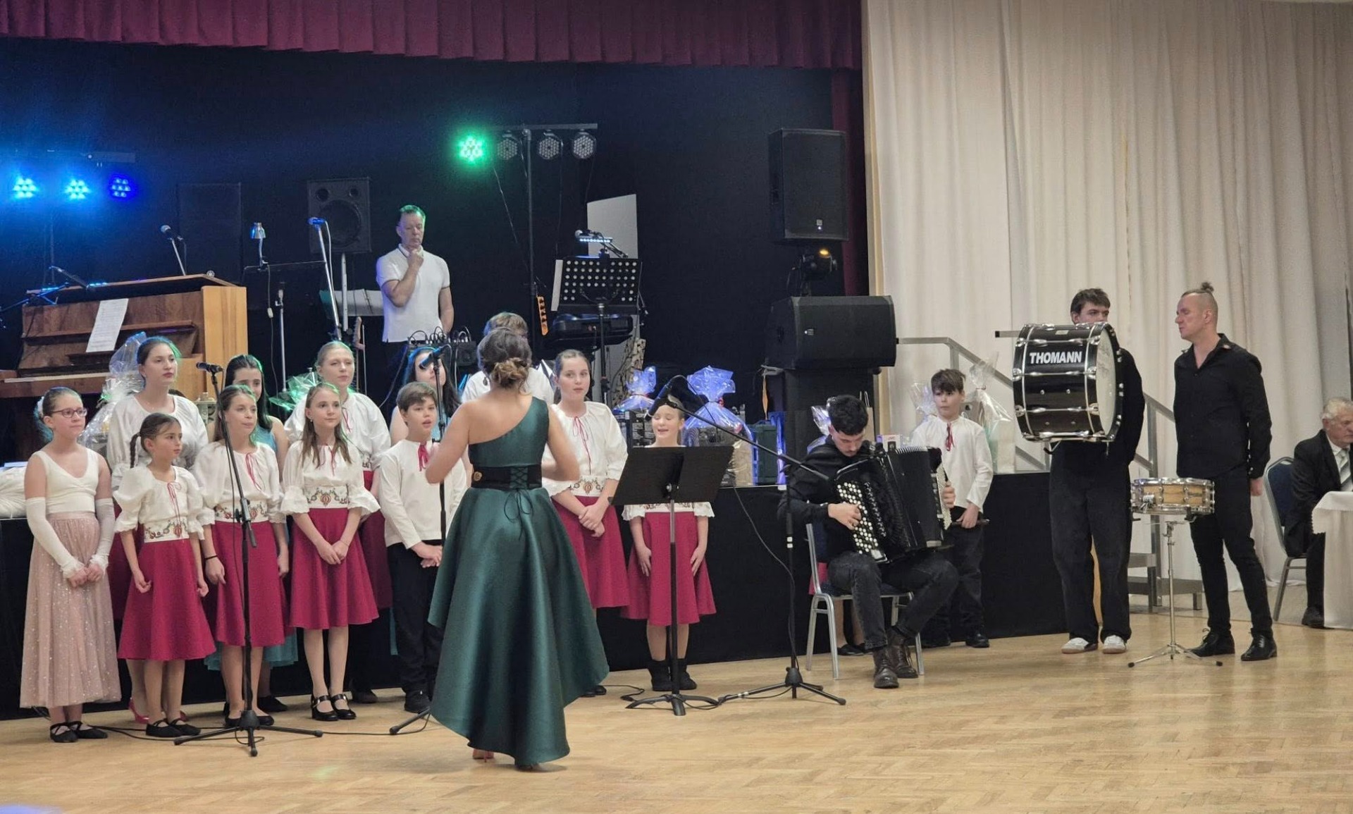 16.12.2025 Nahrávanie v televízii na STV 2 Šikovná pani učiteľka Marta Mccauley so svojím zborom a s pánom starostom Jozefom Savkuliakom absolvovali natáčanie relácie Gratulujeme!