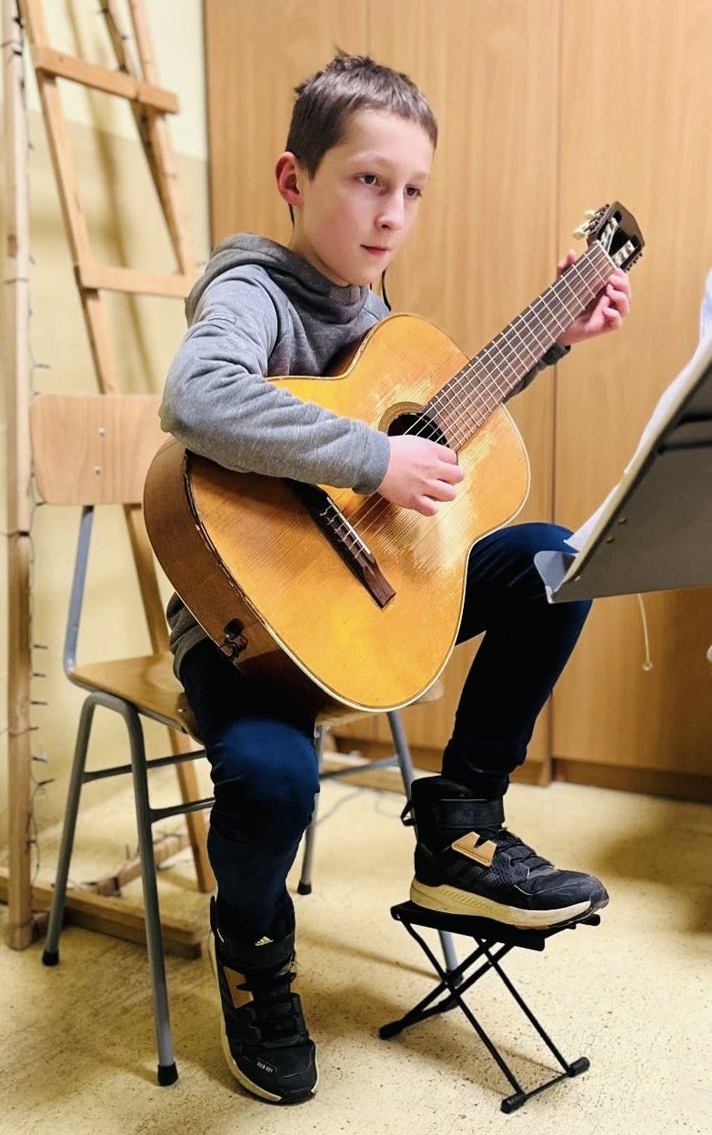 3.2.2026 Triedny koncert žiakov z triedy pána učiteľa Mariána Skácela (gitara) a Luka Lukića (klavír) dopadol výborne :) Učíme deti, že je dôležité prezentovať sa i na verejnosti a zvykať si na publikum :)