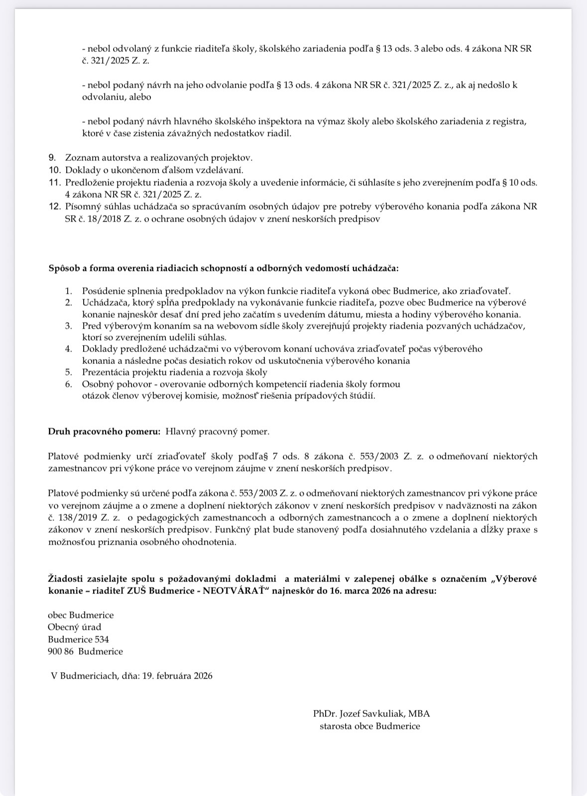 Výberové konanie - riaditeľ ZUŠ Budmerice